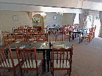 DINING ROOM with seating for approximately 70, French doors to courtyard. LADIES’ AND GENTLEMEN’S TOILETS.