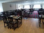 Stairs leading to first floor MAIN RESTAURANT and BAR. Loose dining tables and chairs to accommodate 100 plus, two upholstered seating areas and carpet throughout with central wood laminate floor. Brick-built bar servery, back bar display with shelving and refrigeration units.