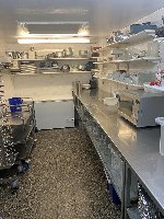 Sizeable and well-equipped two section trade KITCHEN with tile floor. Featuring numerous PREP AND WASH AREAS, WALK-IN FRIDGE, PANTRY, POT WASH ROOM and LAUNDRY ROOM with access to the side of the building. Two BOILER ROOMS. WALK-IN FRIDGE AND FREEZER and central preparation area. Separate PREP ROOM with wash area and storage.