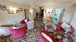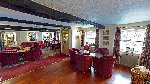 RECEPTION/RESIDENTS LOUNGE with carpeted flooring and sofa seating for 10 with LADIES', DISABLED/GENTLEMEN'S TOILETS offset.