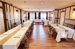 OPEN-PLAN FUNCTION ROOM with wood effect floor, corner bar servery and bench seating for around 60. As the building is on a hill, there is also external access from the driveway. This room is licensed for weddings.